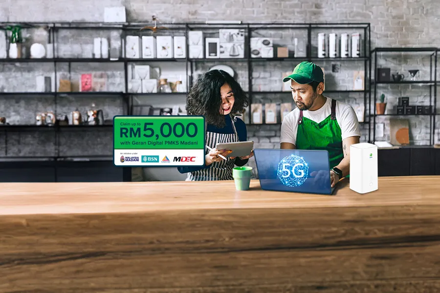Max-speed 5G for seamless business on-the-go with savings up to RM2,500*.